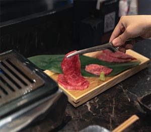 希少部位を多数揃えておりますので、お気に入りの部位を探してみるのも当店の楽しみ方の一つです。霜降りの黒毛和牛を薄くスライスしてご提供致します。生卵と一口ライスも付けておりますのでぜひご一緒に。口の中でとろける最高の食感と脂の旨みをご堪能ください。萬貫の一押しメニューとなっております。